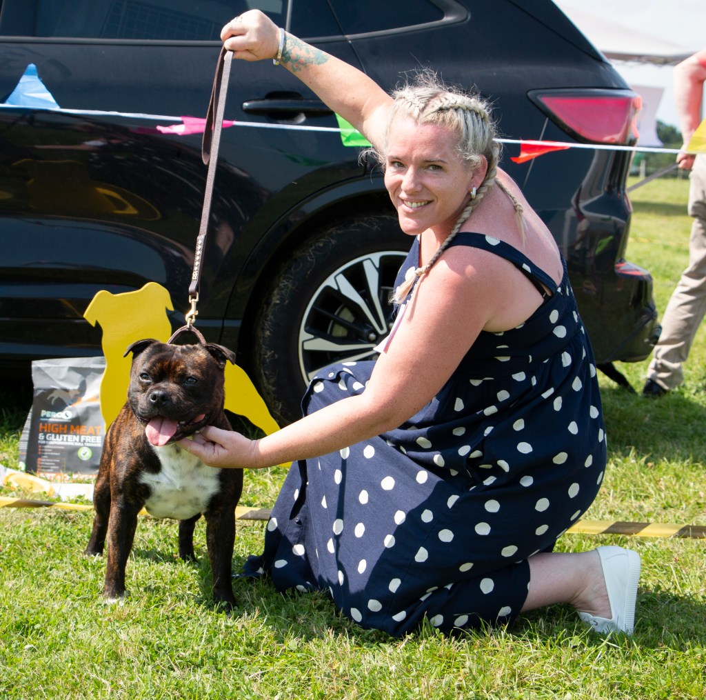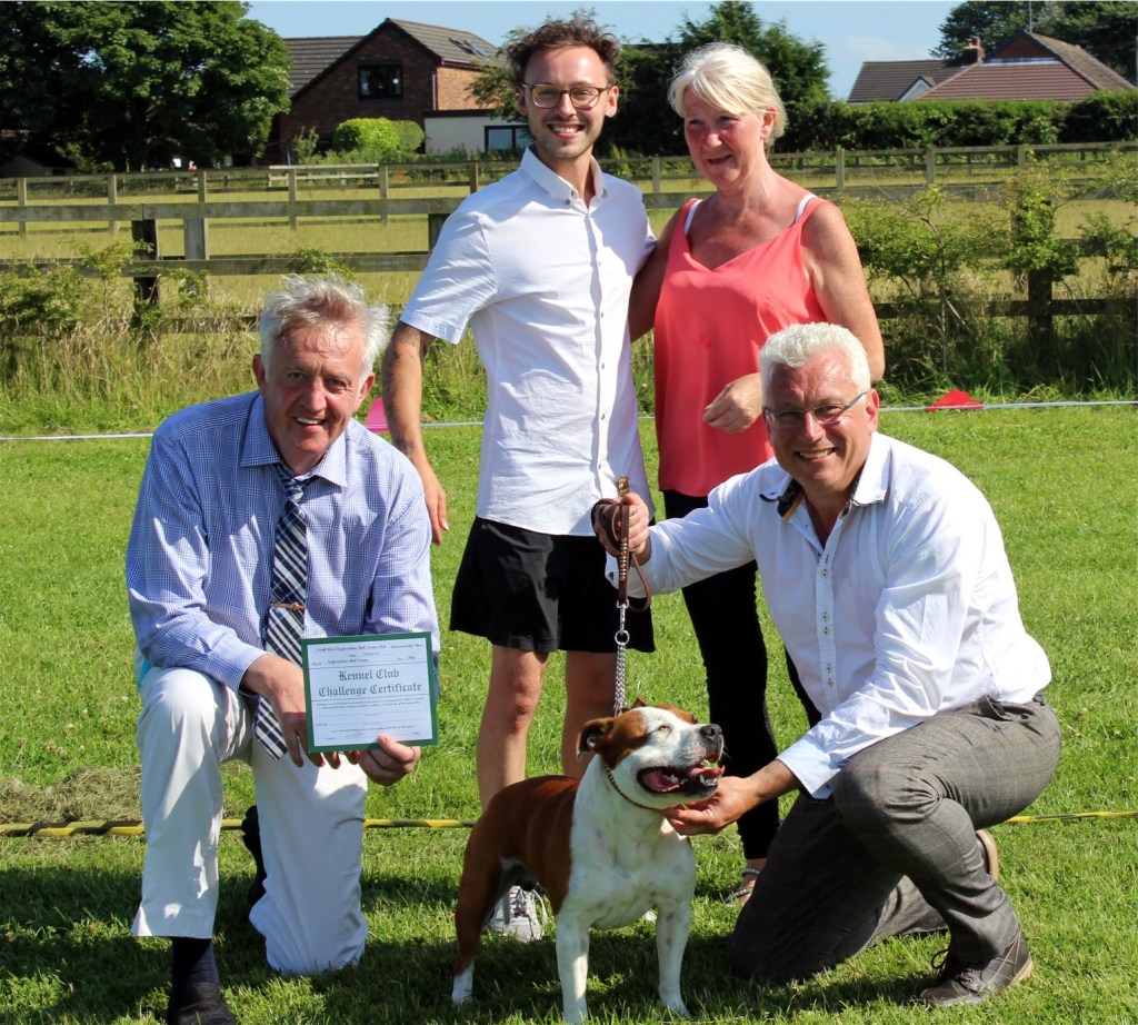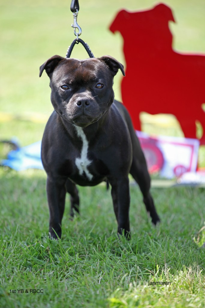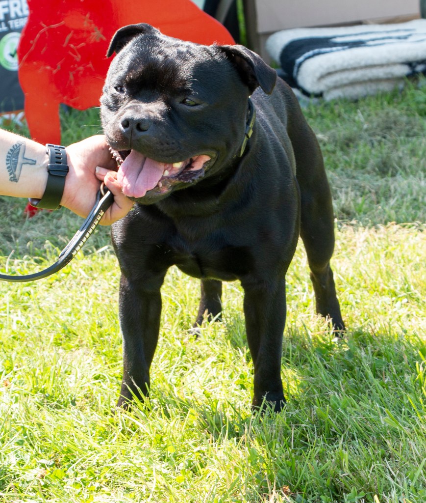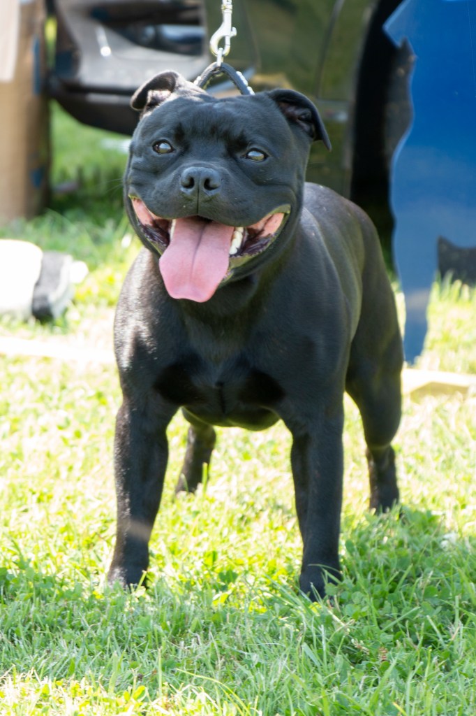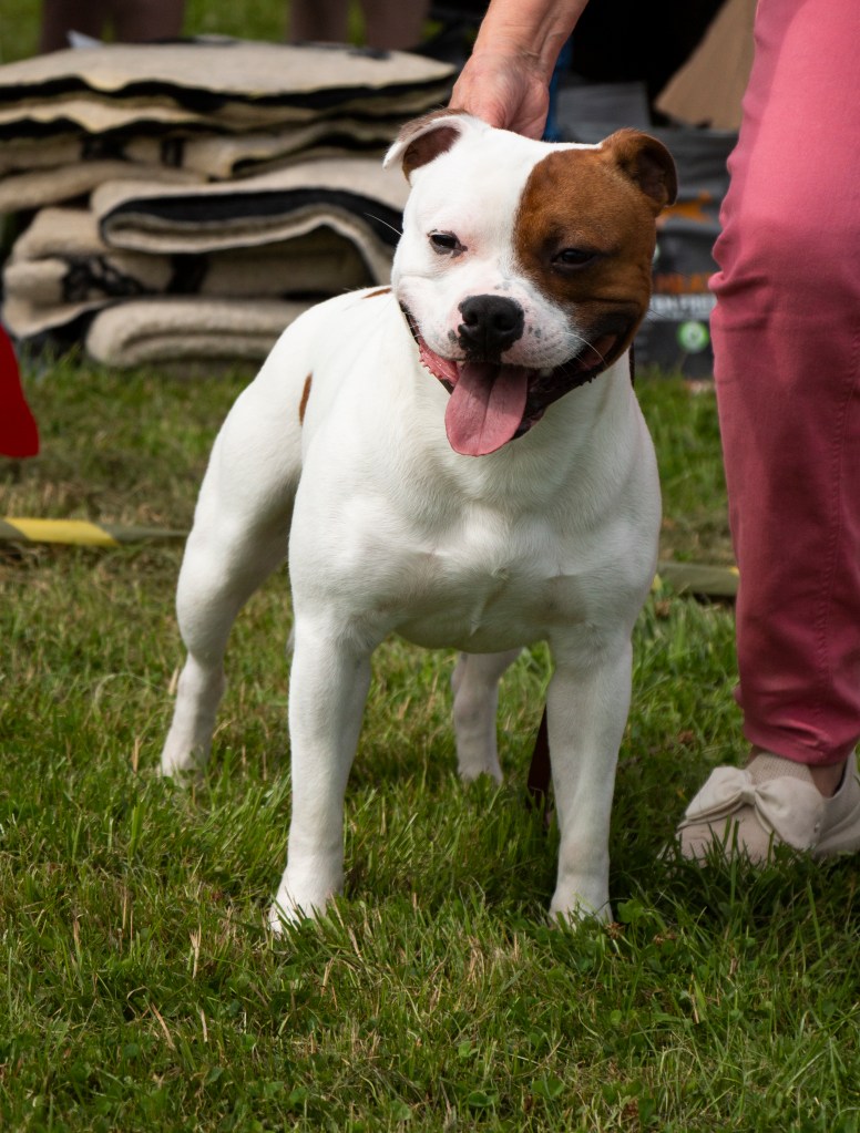 What a day it was! My thanks to the Officers and Committee of the North West SBTC for the invitation to Judge their Anniversary show and for putting on a fantastic day – brilliant atmosphere and very well organised too. The weather was very hot and sunny all day and it did have an effect on some exhibits as they were drained by the sheer heat but owners did their very best and kept them in cool coats etc and I also offered them the choice to leave the ring out of the sun. There were a few delays inbetween some classes due to clashing with the open show, which was unavoidable. The overall quality of what I examined was very good, I Judged them on the day as they stood and performed before me and I know it’s a well used phrase but placings could change on any given day and I’m sure some will. There is a lot of top notch bitches coming through in the younger classes and it is heartening to see that the breed has a good future. In my opinion Covid lockdown certainly hasn’t affected the behaviour of these canine ladies, they were all impeccable and have been trained well during their home schooling with admirable temperaments too. Most seemed to be in good condition although there were a few with quite dirty teeth. Bites were good on the whole with just the odd misplaced tooth; I did not see any major faults. Most were good movers, however some did move in very close at the rear and lacked drive. Thank you for accepting and being sportsmanlike in applauding my decisions; Stafford people really are the best at supporting each other and being happy for someone else. Thank you to my superb ring stewards Elaine Norton and Jan Matthews – you did a brilliant job and in the heat of the day you never dropped a beat!