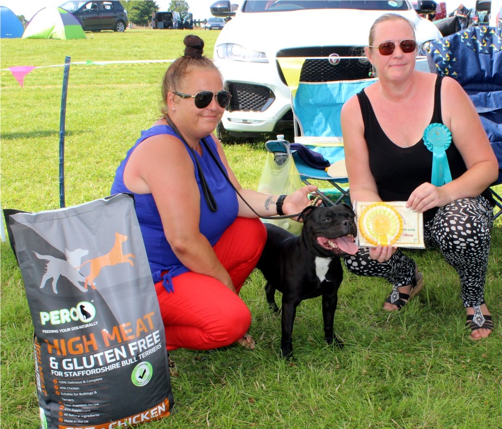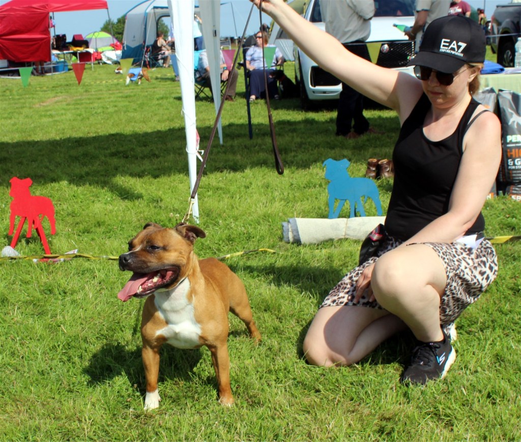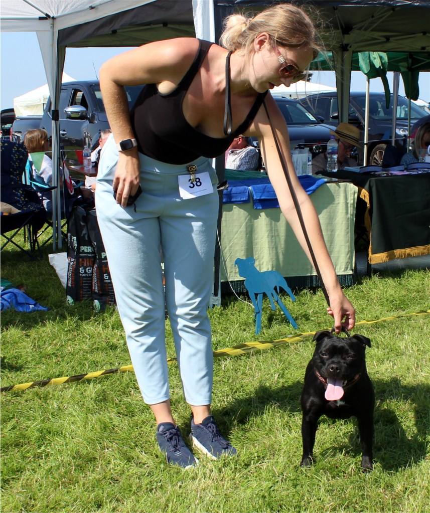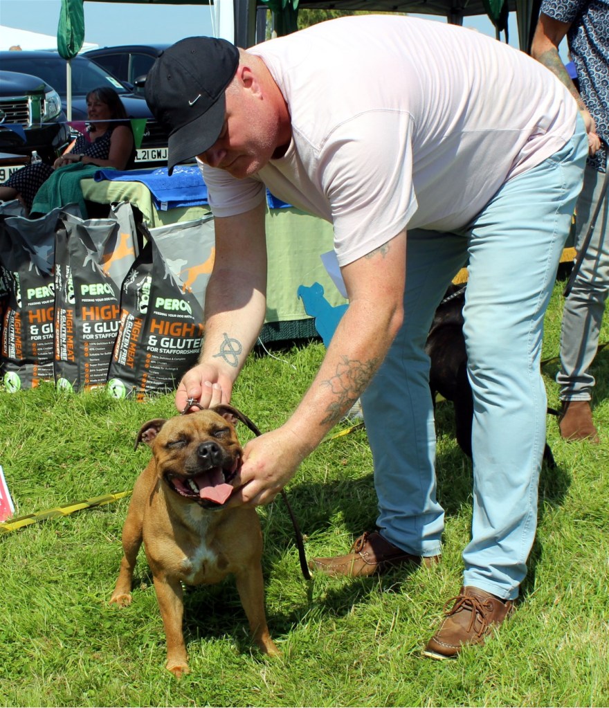1st Ovington’s – Diamondstaff Airdrie Pride – Black brindle top sized dog with nice head shape, correct ears and dark eye, he has a cracking front on him with a good brisket, neat feet, well sprung ribs, close coupled, strong rear and he moved with drive around the ring for his handler.