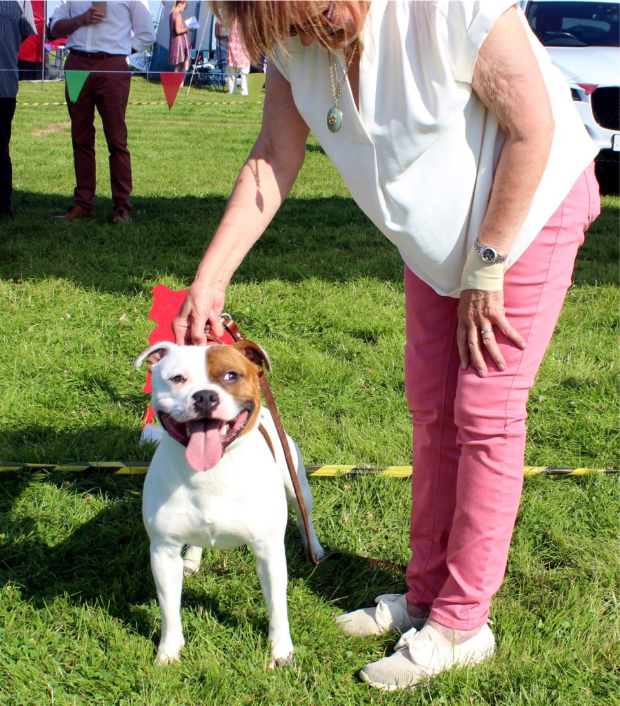 2nd Burrows & Ayrton’s – Rossobull Iggle Piggle – Brindle dog with white chest, I loved his colouring, good strong head, dark eye and good ears, correct front and on the day I just preferred 1st place, close coupled with good spring of rib, well muscled rear, he moved well holding his topline.