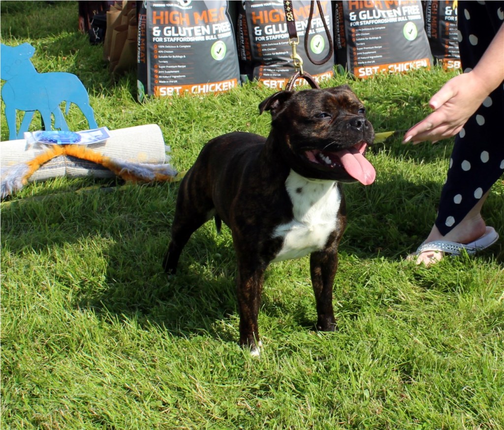2nd Canavan’s – Ch Boldstock Am I Bovered – Brindle bitch, super colour, smaller all over than 1st place still balanced, neat headshape with correct eye and ears, close coupled and the fittest of the trio, strong rear and moved well.