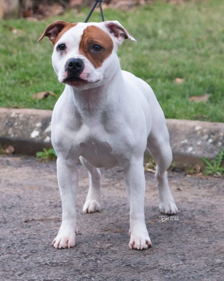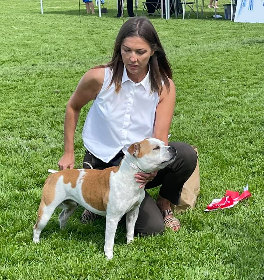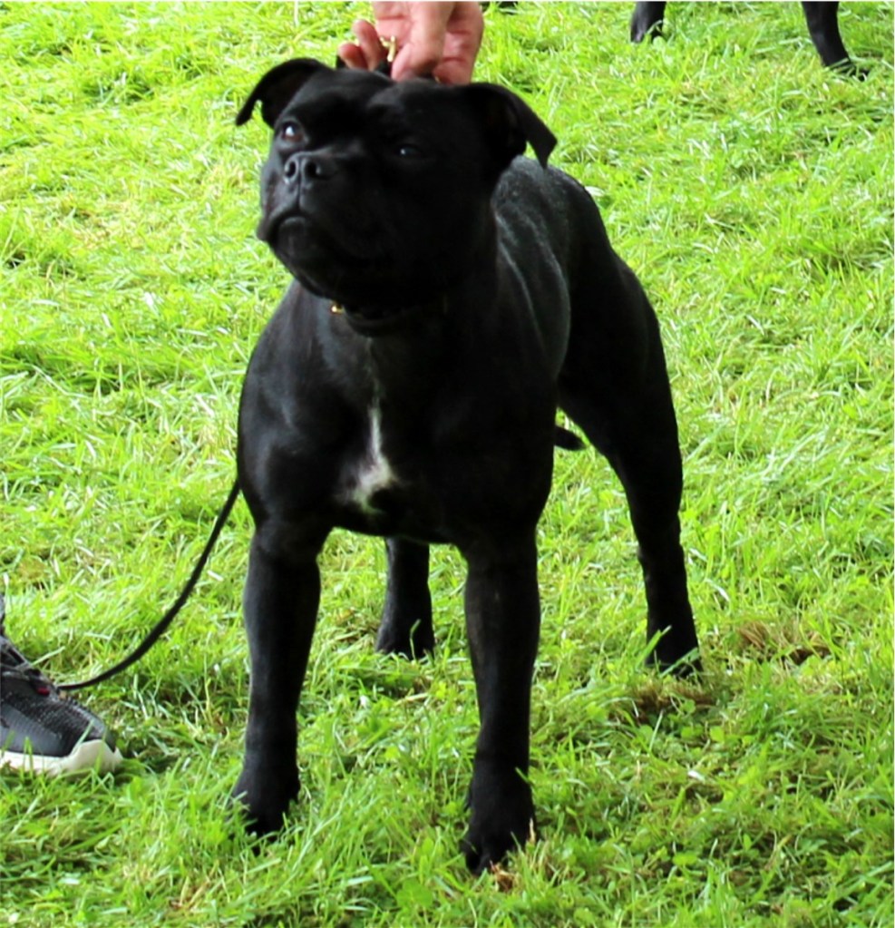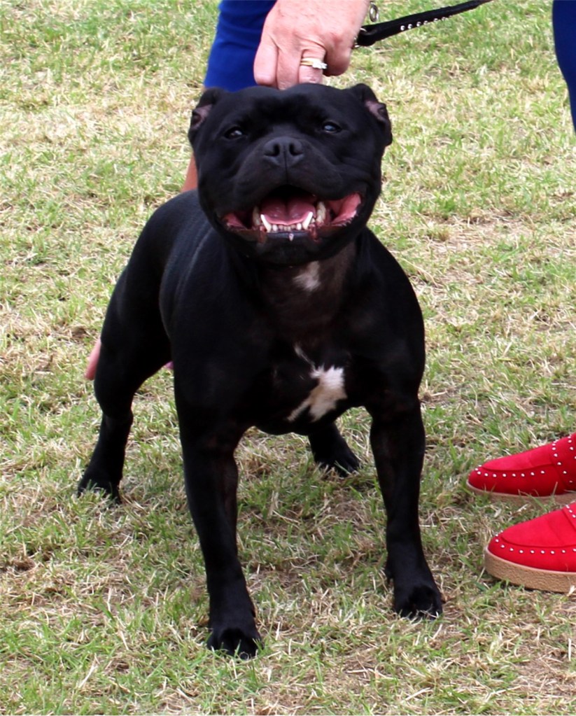 Dave & Vicki Butler’s Joemikeste Fair And Square was placed first in the Junior bitch class – this youngster is out of their Champion bitch Ch Joemikeste Play The Game. Ch Bullhawk Jessie Jay at Northstaff won Best Veteran at this show, no photo to hand but there is a pic of the second placed bitch – right.