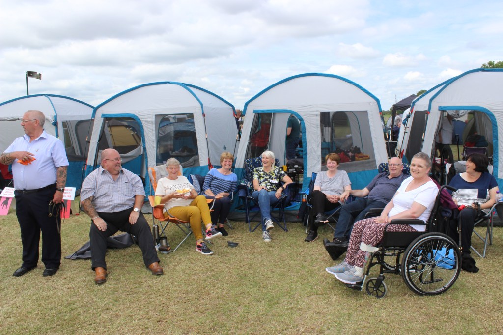 The first day we enjoyed some more typical NW weather – rain – so we were all packed into the wet weather tents and when I say packed in I really mean it – see below.
