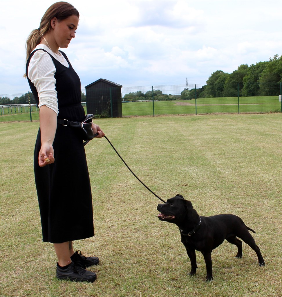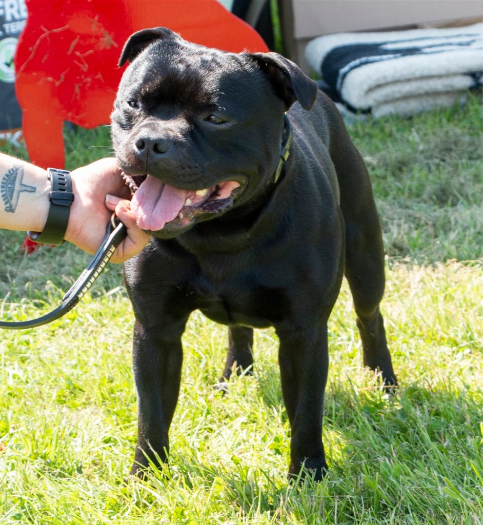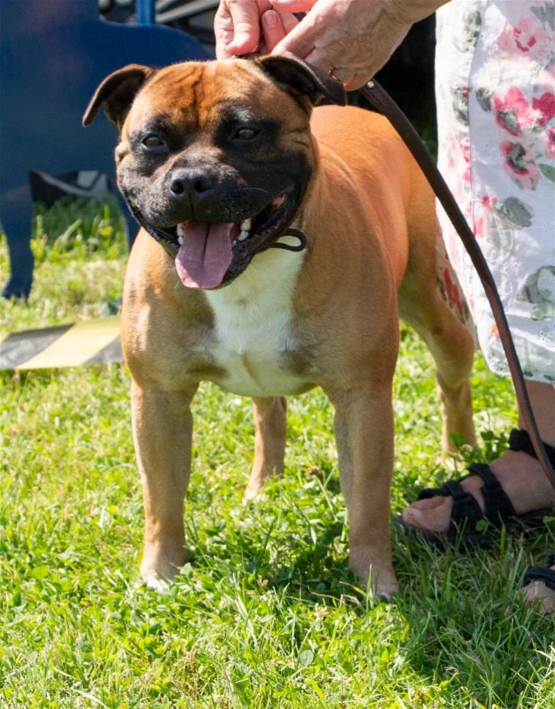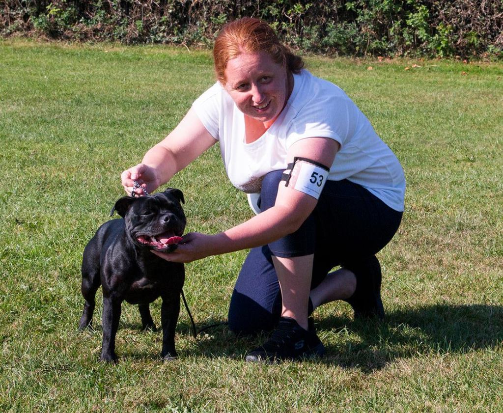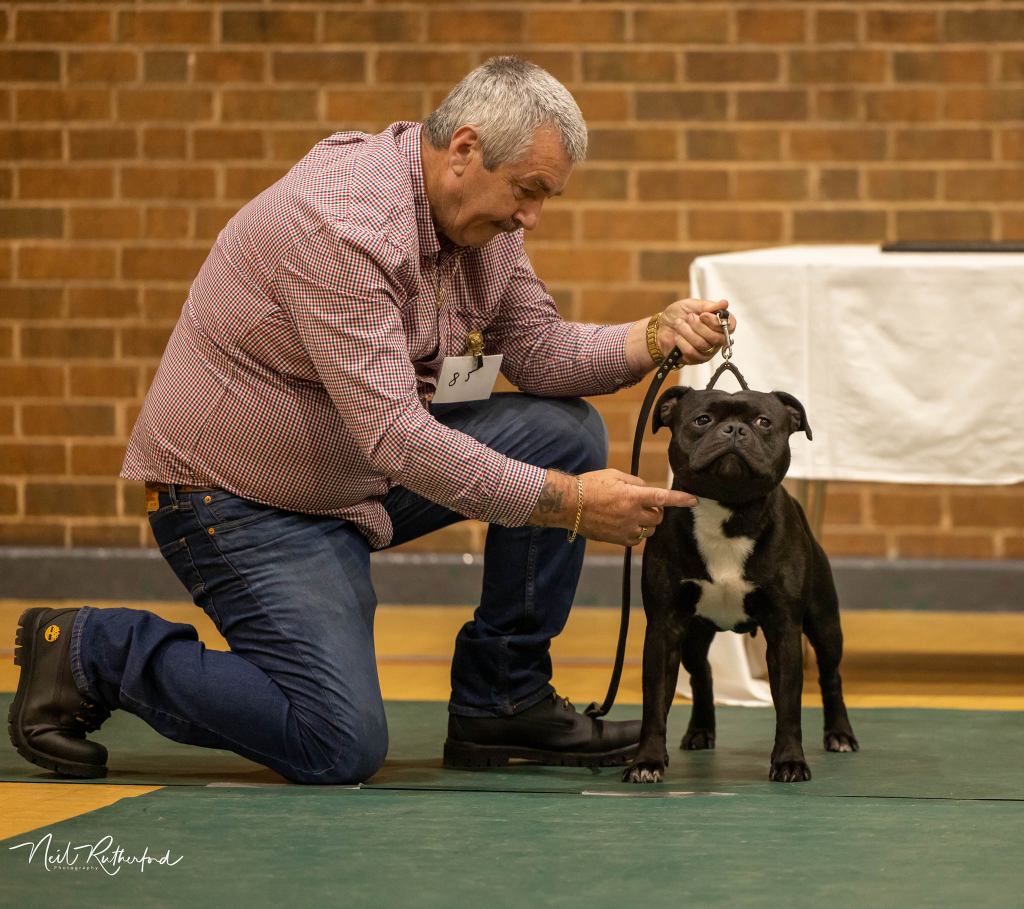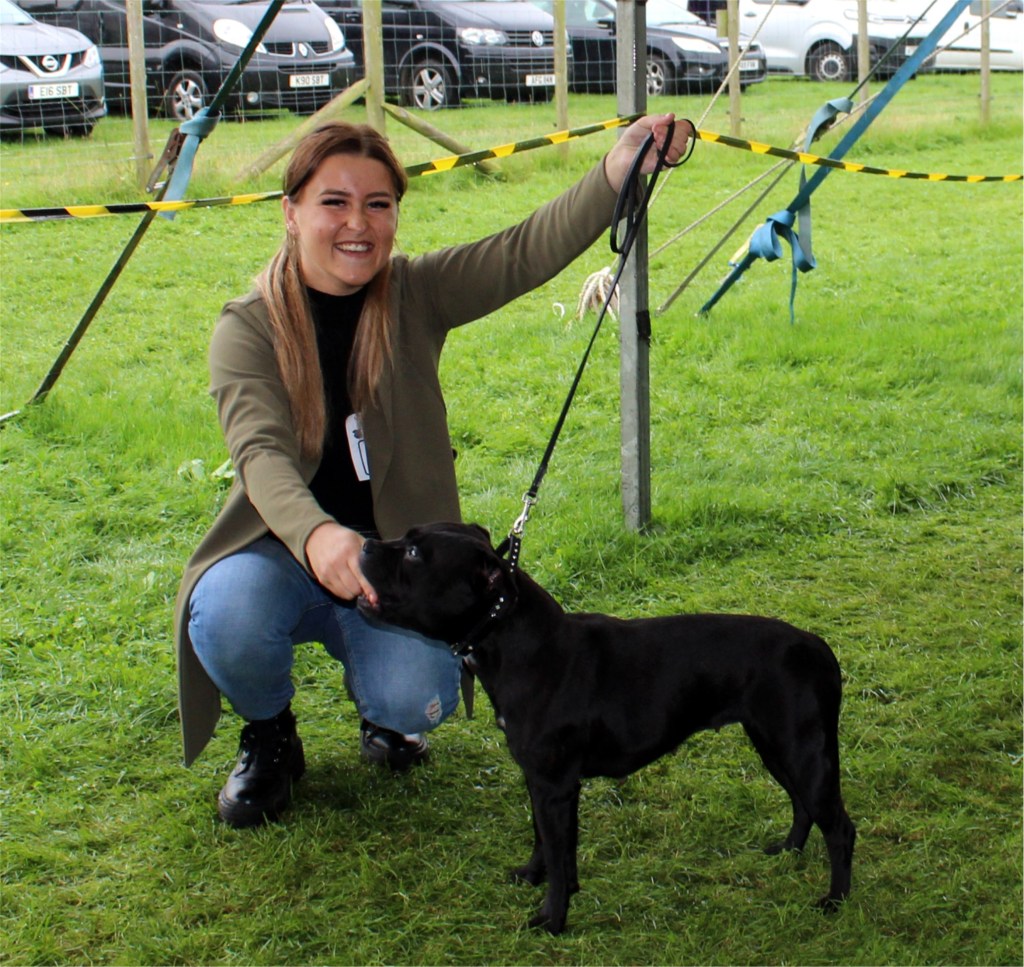 Kate Burrow’s Rossobull Iggle Piggle took a very creditable second place in a very strong Yearling Dog class and then moved up a place in the Novice class – although Kate doesn’t look too pleased on this shot.