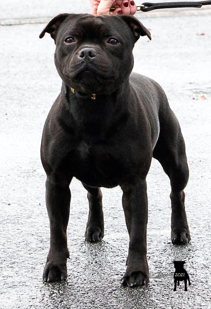Best Puppy at this show was Linda Hall’s Geordiestaff Nee Botha and she went on to go Best Bitch, Linda looks tickled pink with this terrific result, and so she should. Neither of these two dogs had been shown before before as was the case for all the dogs born after September 2019.