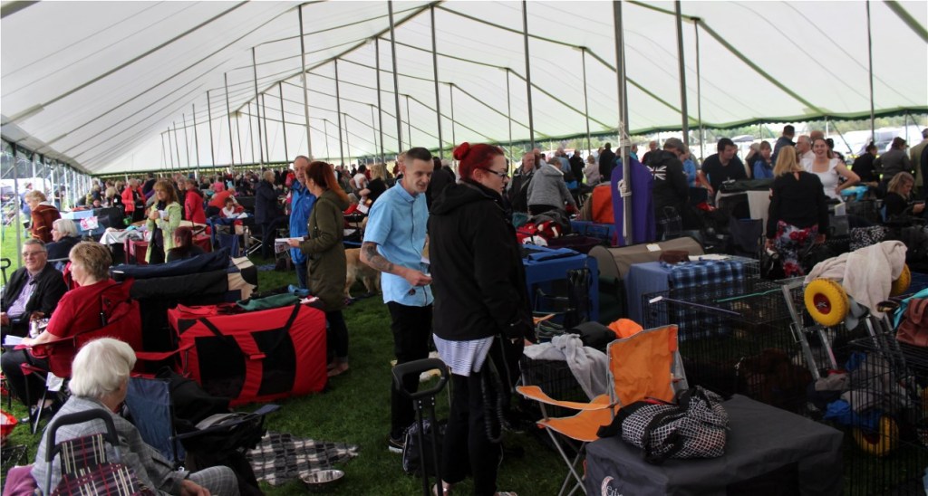 This was the first Breed Club championship show and this photo demonstrates the relaxed atmosphere prevalent at this show, continuing into the rest of the summer. More gazebos here giving an idea of the show scene during the early Covid times – from this shot it looks like everyone went to the same shop.