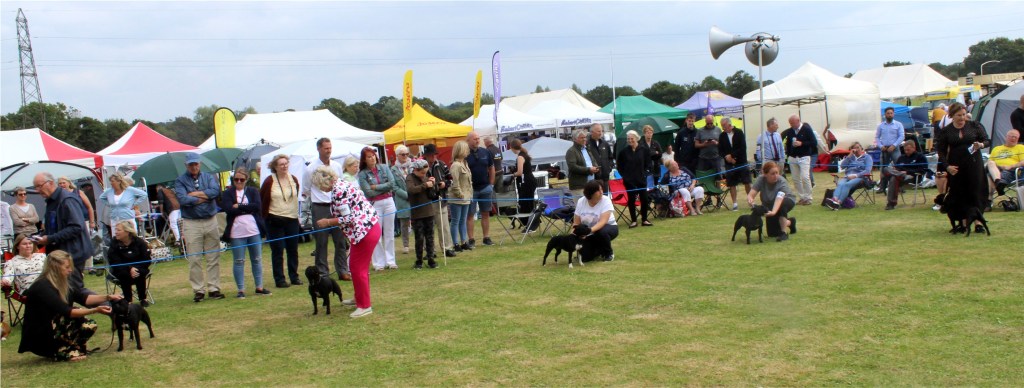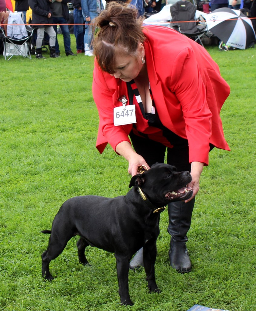There was however a handful of firsts won by members – on the left Chrissy Howard with Matrixstaffs Kilgharrah – this dog is out of a repeat mating that produced Matrixstaffs Black Beauty, second in the Limit Bitch class, behind the winner Jackabyte Bocouture, right.