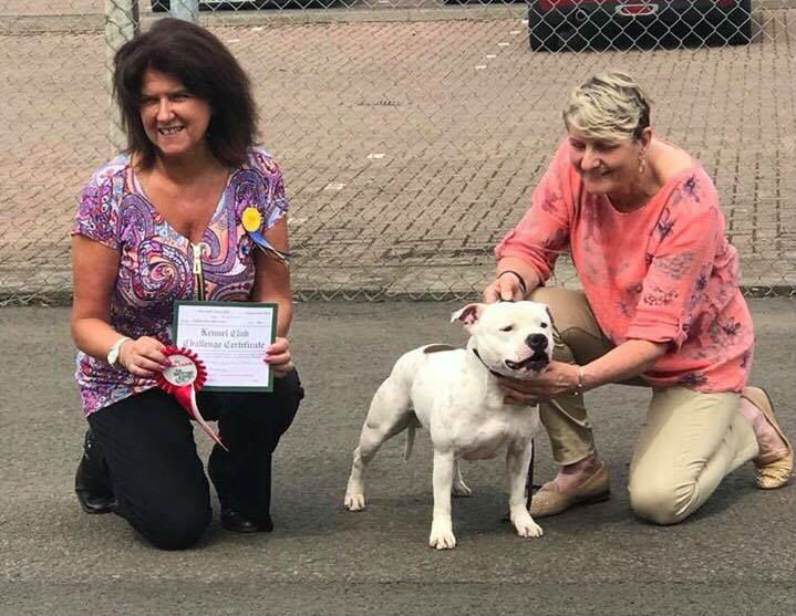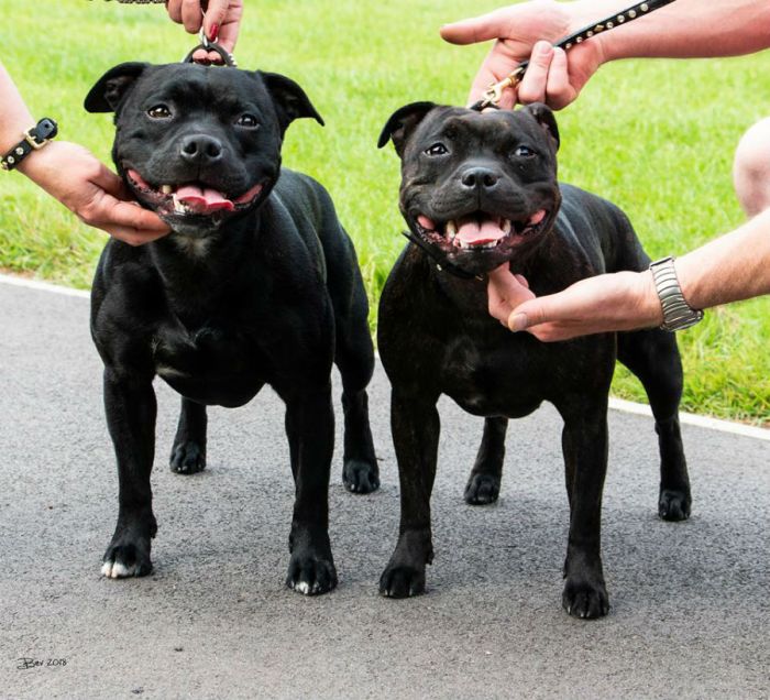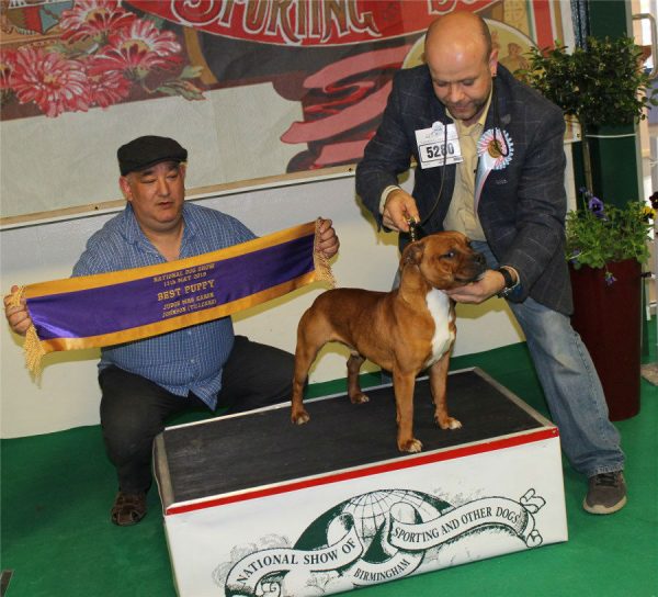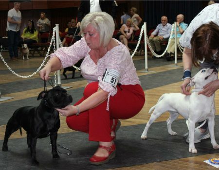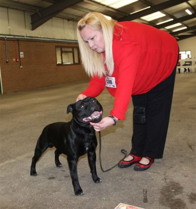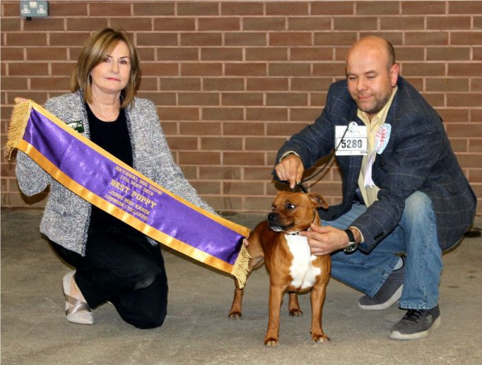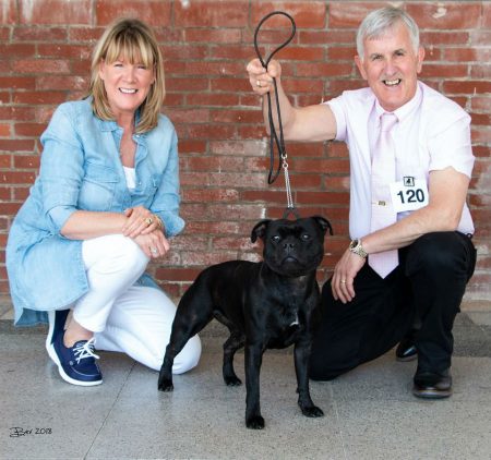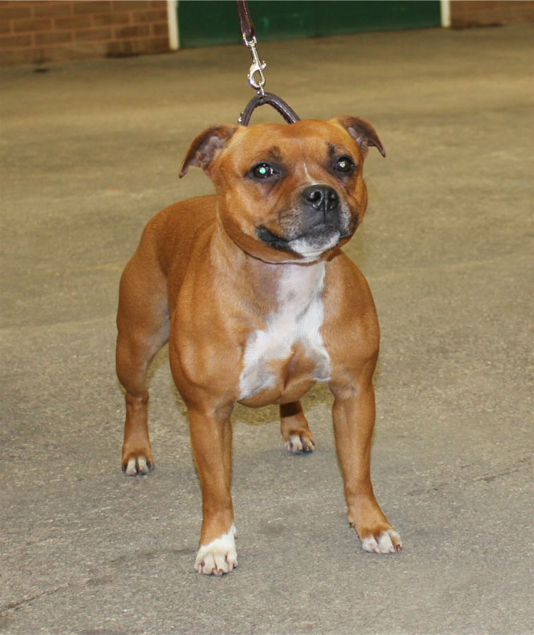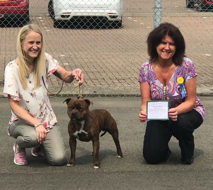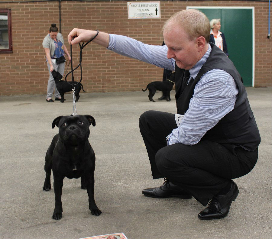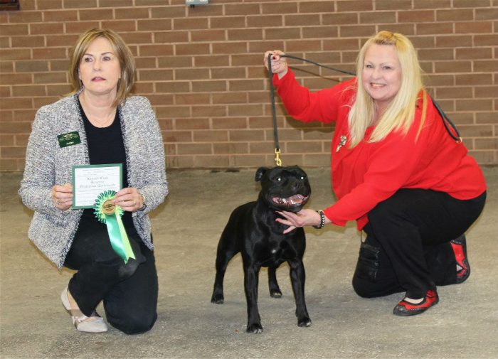 It was in this class when taking a photo of our bitch in 4th place (Tikkurilan Spot On) that I noticed in 5th place was Chris Howard and her bitch Caymenstaffs Little Minx – this is the result – a few things going on here which I only realised when I processed these photos.