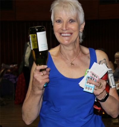 Success for the Nortons didn’t stop there though – contrary to my misgivings on paying £5 for raffle tickets we actually came away with a bottle of Southern Comfort and a bottle of white – here she is with a fist full of tickets and her haul.