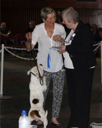 Moving on – and a win in Veteran for Pendlestaff Brindle Babe at Tikkurilan – she went on to win Best Veteran, so well done to us – Tec & Elaine Norton.
