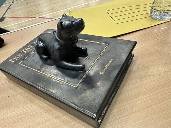 She has given over 45 years of her life to this cause, rescuing in the region of 4000 Staffords. The Gallimore Trust and Stafford Welfare have applied at least twice to the government recommending her for official recognition. As this was not forthcoming, we presented her with our medal and a bouquet, thus declaring her a Dame.