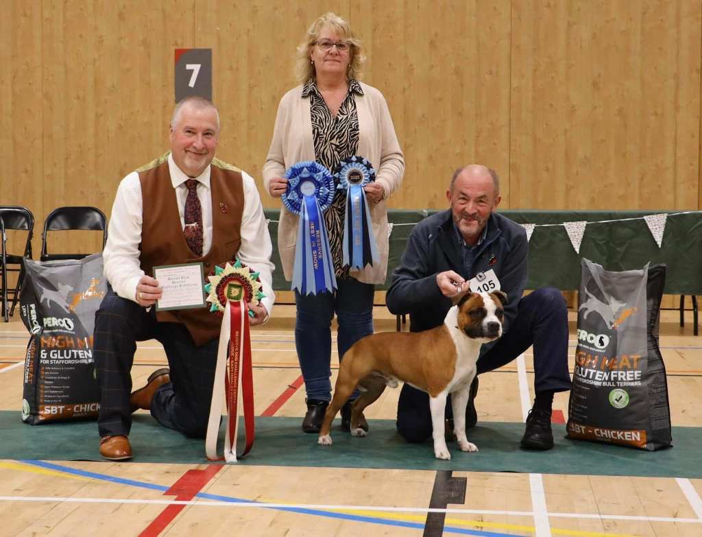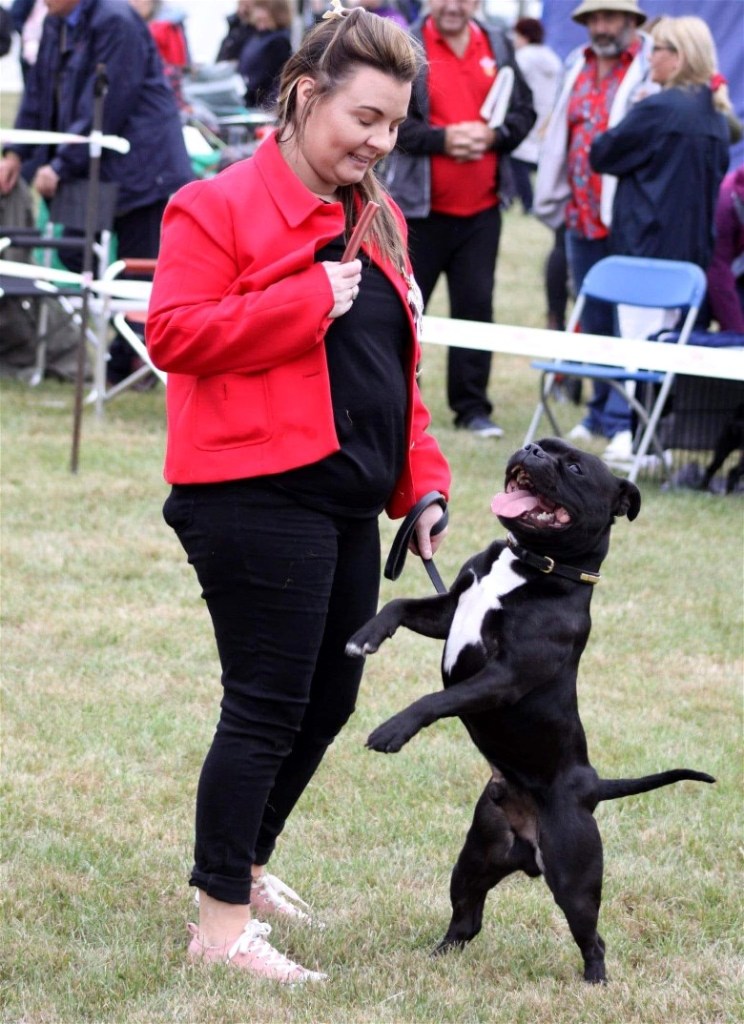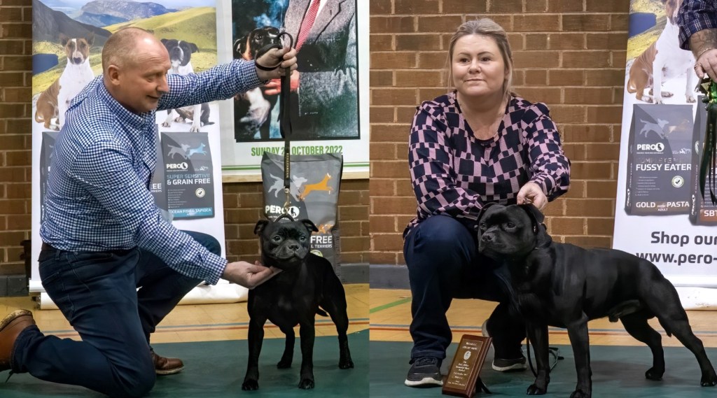 At the South Wales club show Jackabyte Wonderlust at Rhebelstaff was awarded her third CC and this result confirms the Jacksons as Top Stafford Breeders for 2022 with three Champions made up in the year – what can you say – superb and a feat that has never been achieved in Staffords, ever.