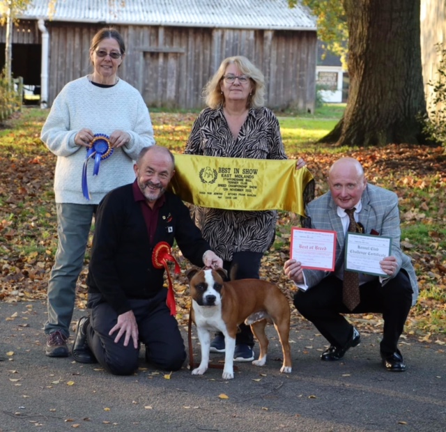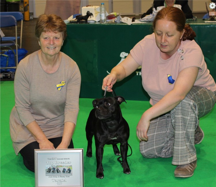 It might be worth mentioning also that this latter bitch has produced three Champions! Make that 4 Champions after Taraiel Dua Lipa was awarded a 3rd CC at WKC – that’s 3 Champions from one litter!!! Only ever been achieved before in Staffords, way back in the 50’s & 60’s. Well done, Julie & Stacey.