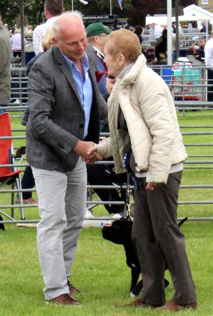 Pictured above are Dawn with judge Martin Johnson and handler Wynny Southworth