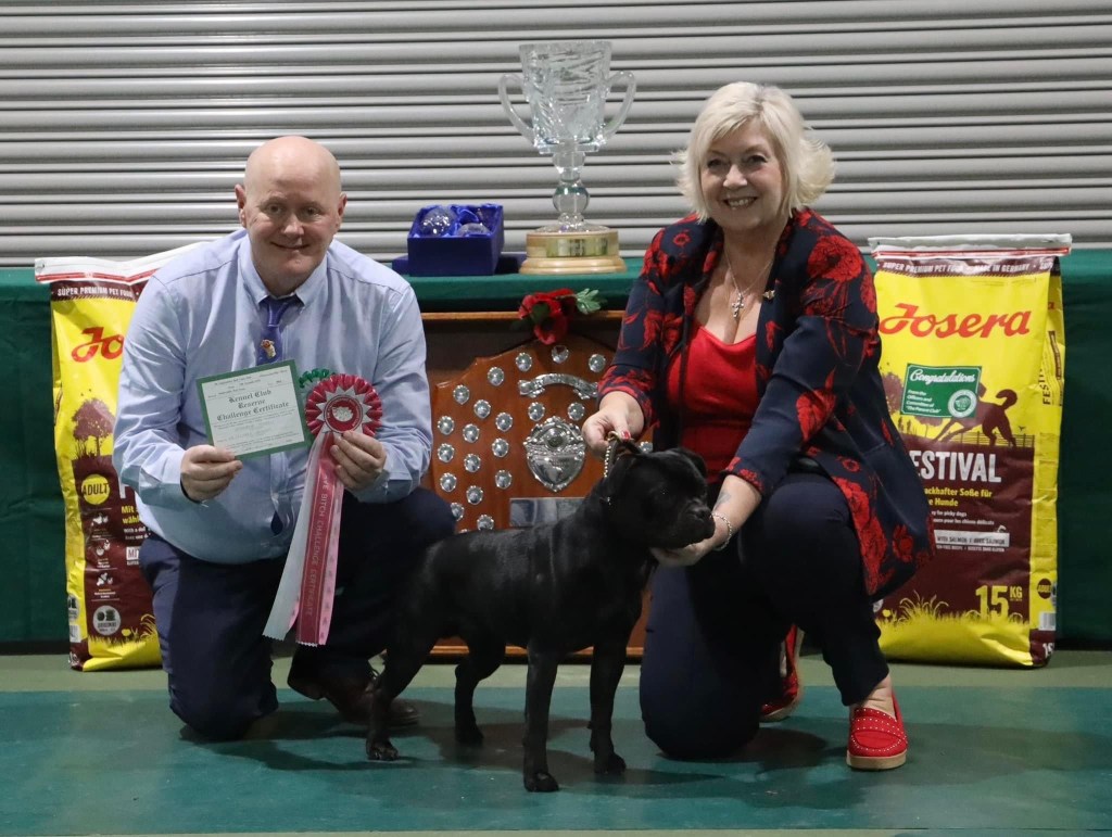 Jackabyte Javikah was awarded a third CC at Darlington under Alan Small. Wayne & Karon Jackson, NW members, have been around a long time – they have now bred four Champions and they have also made up three others – and the joy of winning tickets never seems to wayne with Karon.
