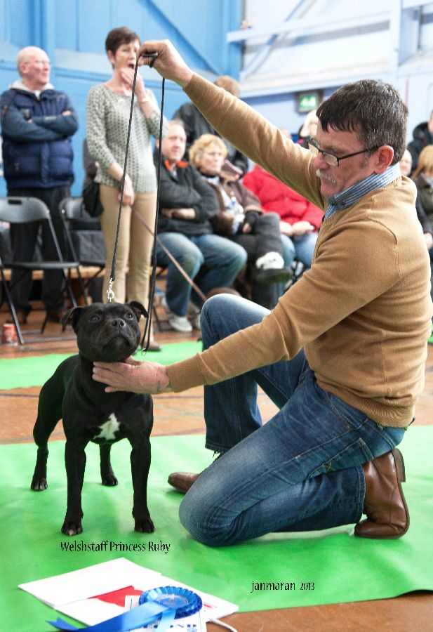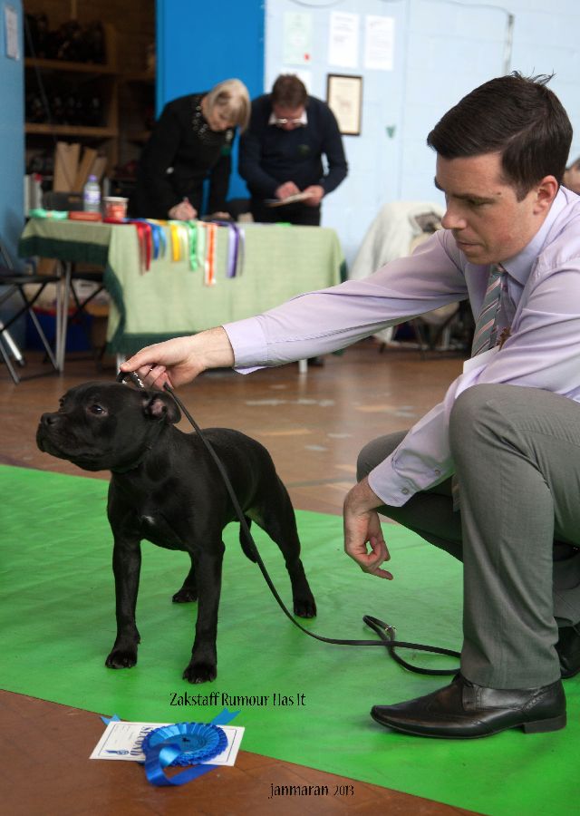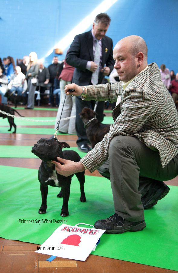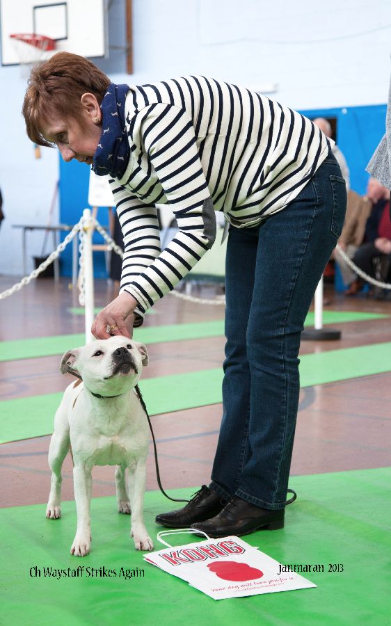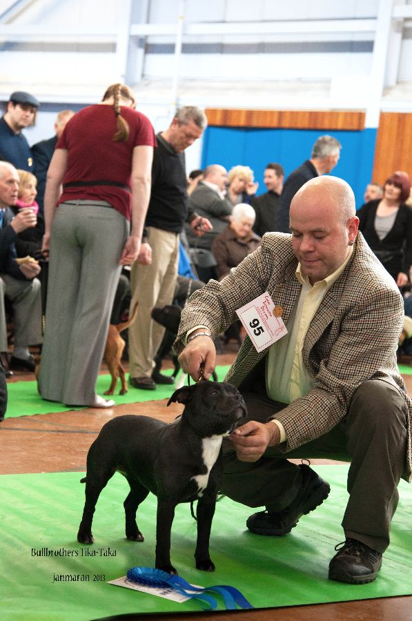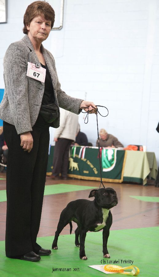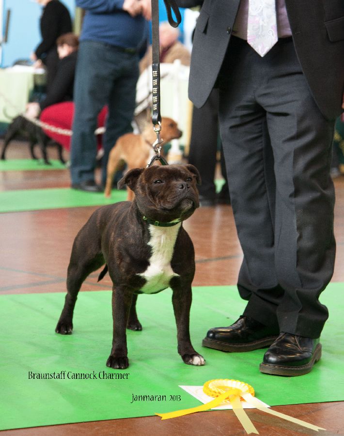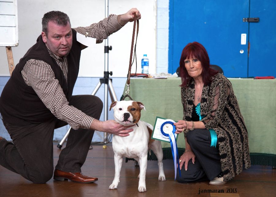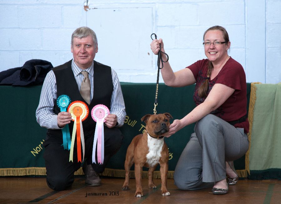 Firstly I would like to give a big thank you to the Officers and Committee of the North West SBT Club for giving me the opportunity to judge bitches at your 2013 Championship Show, which was run well and efficiently for all to see. Also a special thank you to my two ring Stewards, Tec Norton and Paul Sutcliffe who worked hard all day which made it lot easier for me, also a huge thank you to all exhibitors who entered and with so few absentee’s it made it a very special day. There were a couple with loose elbows, level bite and poor ear carriage which were placed accordingly, but overall standard was high and a credit to their owners.