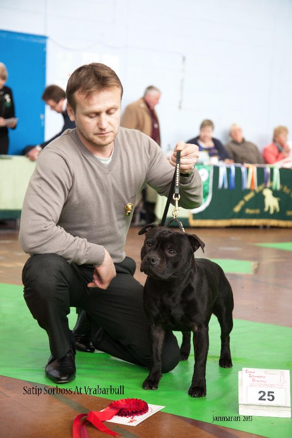 Yearling Dog 1st CHOMA & MATVIAKOVA’S SATIP SORBOSS AT VRABARBULL – B/b of excellent quality, has a good future, strong head, neatest of ears, correct bite, lots of power in the neck and body, short coupled, level topline, strong hindquarters, in great coat, moved very well.