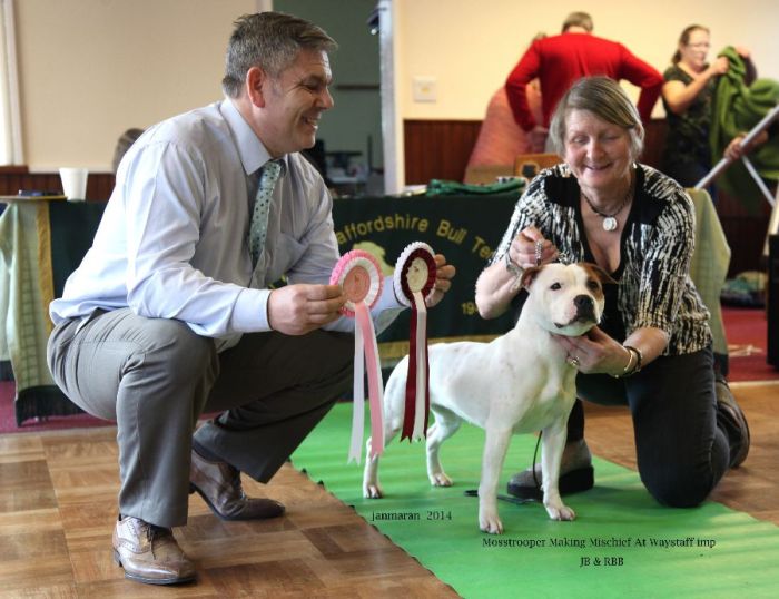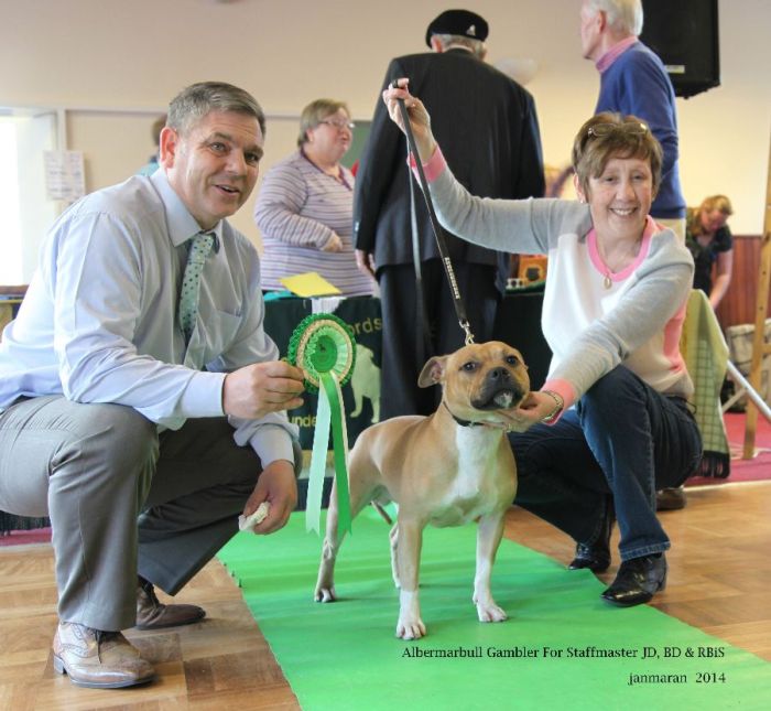 Reserve Best In Show and Best Dog – Wynnie Southworth’s Albermarbull Gambler For Staffmaster