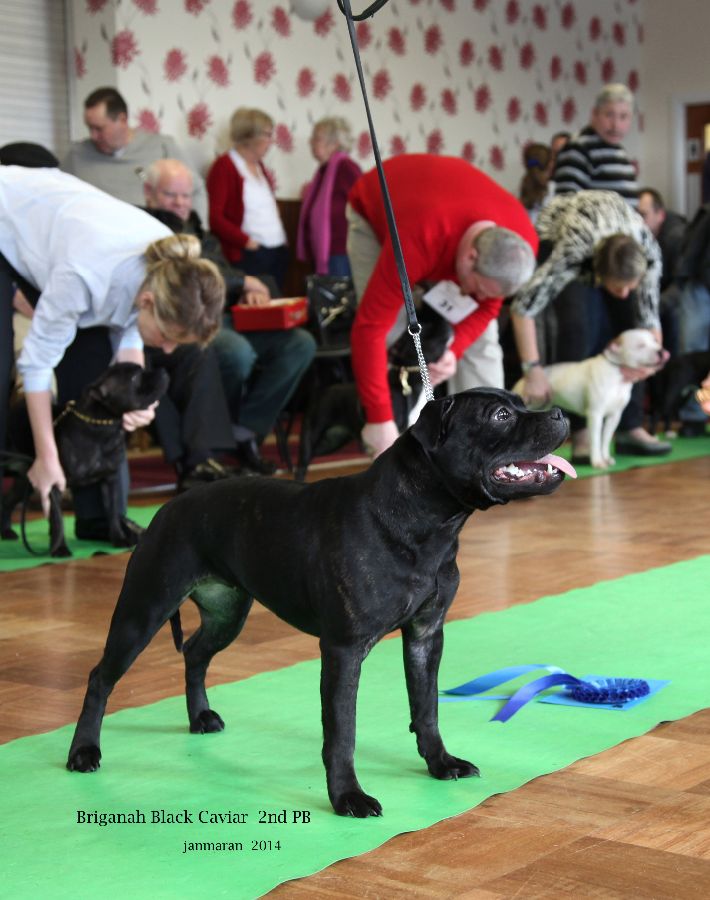 1st Howfenstaff Paddy’s girl at Paljaz. Strong compact black brindle. Powerful head with good mouth. Dark well placed eye, neat ears. Well boned front with tidy feet, good rib. Well angled strong rear, moved best in her class, carrying a little weight.
