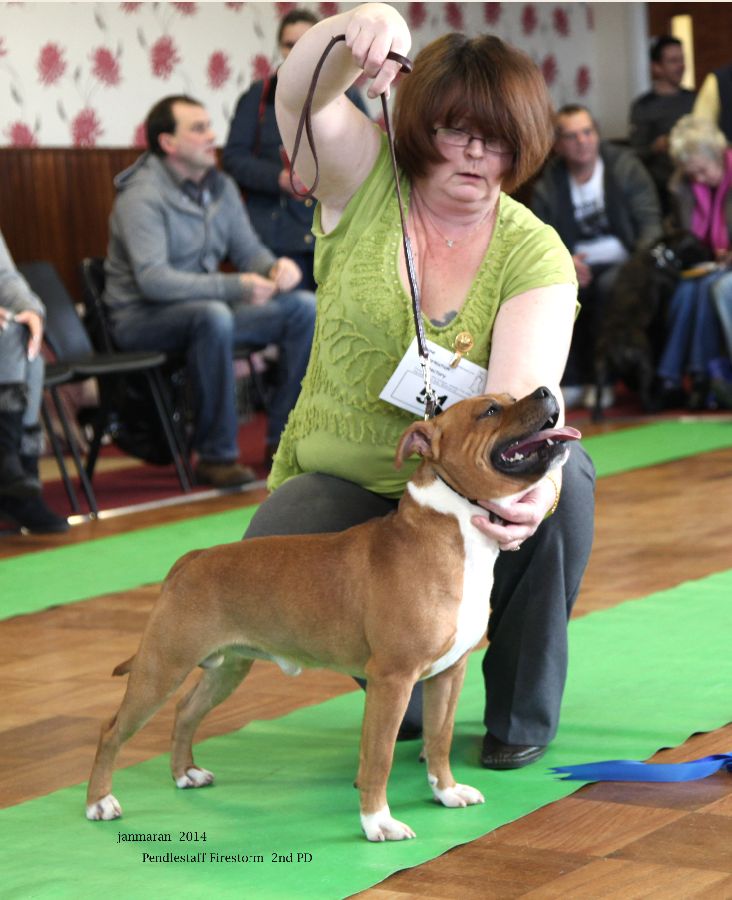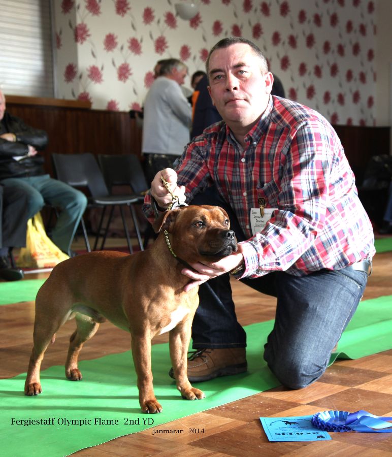 Fergiestaffs Olympic Flame; red and white with pleasing head shape, dark eye, neat ears. Good top line moved ok. Just preferred the front on my 1st place.