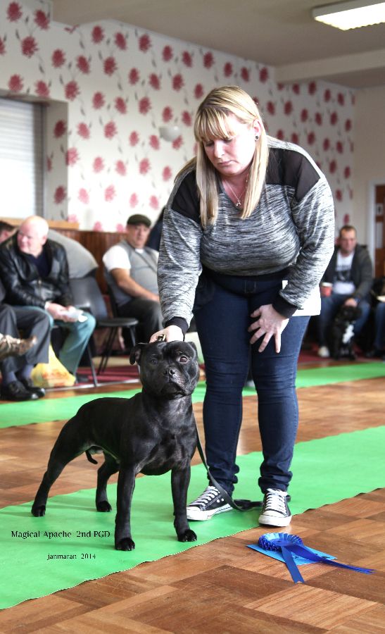 Magical Apache. 3rd in a hard junior class. Brindle with all that was said about my 1st placed but a little bit lighter set.