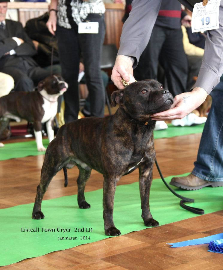 Listcall Town Cryer. Dark brindle good front level top line, nice bend of stifle moved well, preferred the compact in my winner