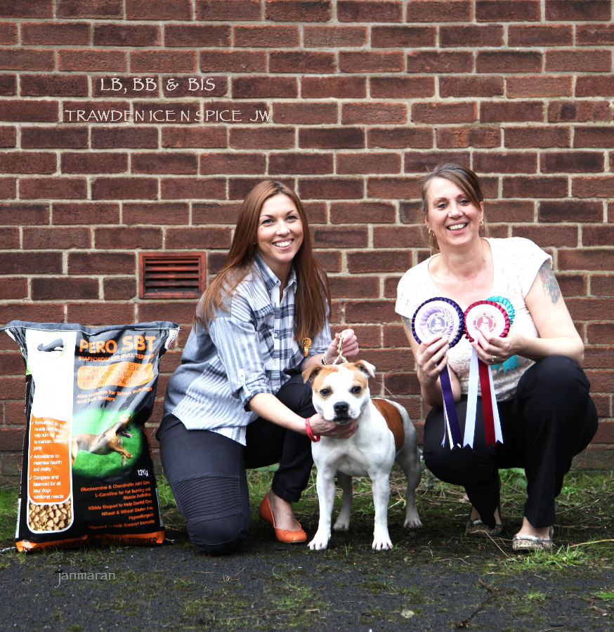I would like to give my thanks to the NWSBT club for this opportunity to judge their breed show. I would like to thank my stewards for running the ring well. Many thanks to all the exhibitors for placing their dogs under me today, and allowing me the opportunity to examine the dogs and bitches that attended. The dogs today were presented in very good condition; coats were clean and well presented, it is important for exhibitors to be presenting their dogs in the best condition for the show on the day. Fitness of dogs overall was good, some good muscle tone on exhibits, others would benefit from more road work, also structure is important when breeding, poor conformation will affect the dog when moving, this needs to be addressed as it can bring other structural problems in the breed, the mouths on the dogs today overall were good, no inverted canines, dirty teeth is not ideal, please make the effort when entering your dog.