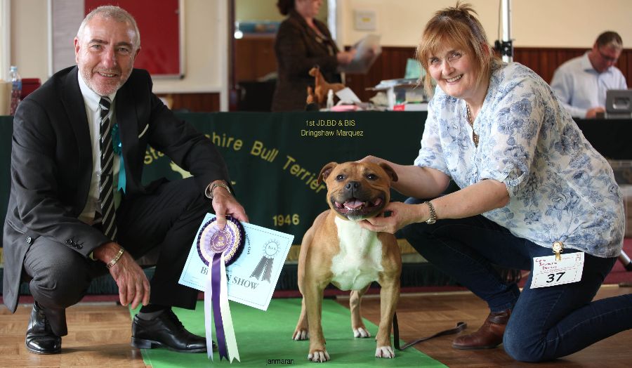 I would like to thank the committee of the North West Staffordshire Bull Terrier Club for offering me the opportunity to Judge their prestigious single breed Open show and to all those who assisted at the show for their hospitality and congratulate them on hosting a wonderful show, a special thank you goes to my experienced stewards Mrs Kay Aspin and Mrs Claire Crossman. It was pleasing to see that the Open shows are still attracting quality examples of our precious breed, my appreciation and gratitude goes to all those exhibitors who supported the show.