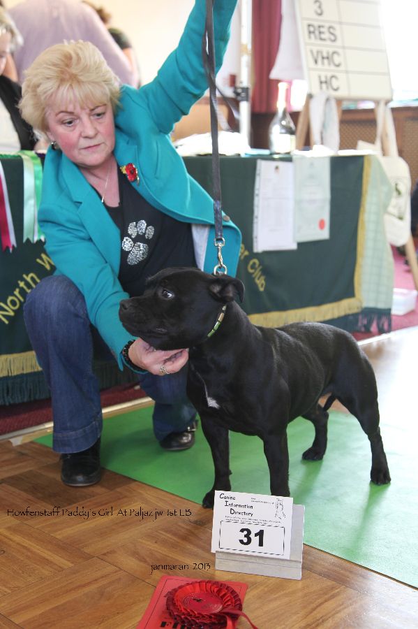 LB 1 Matthews & Patrick’s, Howfenstaff Paddy’s Girl at Paljaz b/b, strong clean head, dark round eye, neat rose ears, correct bite, straight front well sprung rib tight feet up on the pasterns short coupled, fit hard condition
