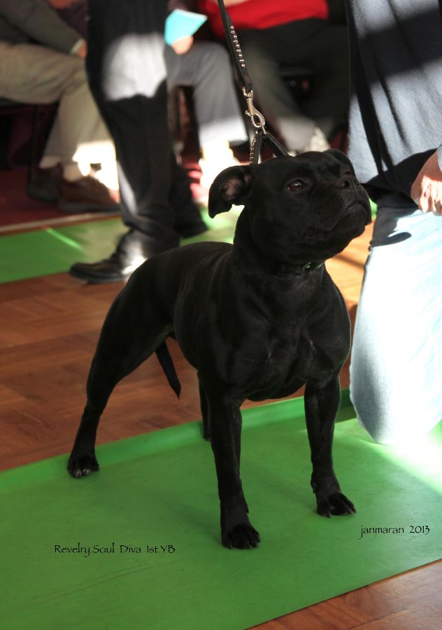 YB. 1 MacDonald Foster Johnson & Brown’s. Revelry Soul Diva, b/br, lovely head shape, dark eyes, tidy ears, good expression scissor bite, tight lips, straight front, tight feet, good tuck up, fits the standard all round, fit hard condition, moved with drive.