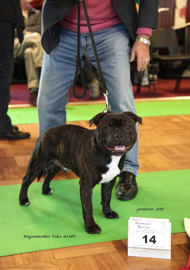 2 Heron’s Dilirystaff Rough Diamond, stronger head than 1black mask good cheek bumps good clean mouth big teeth good underjaw good depth of brisket moved ok.