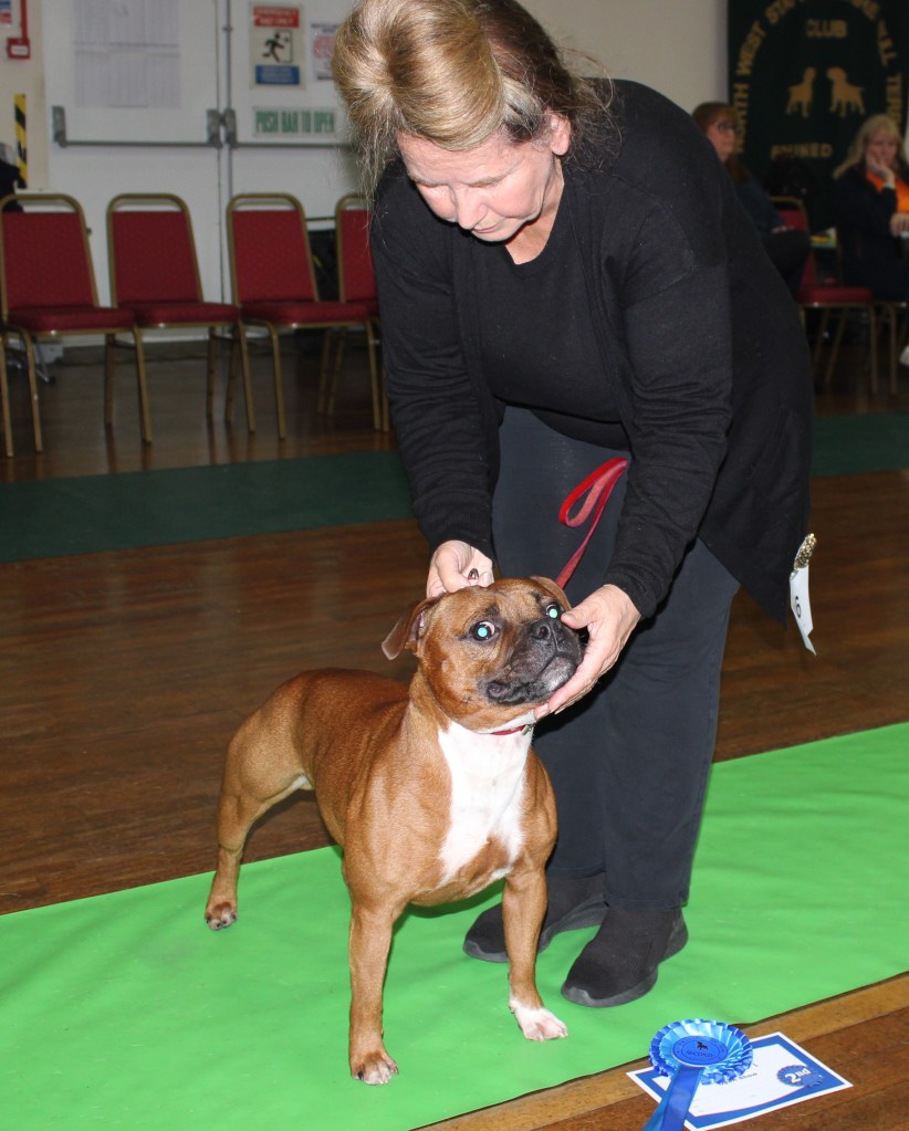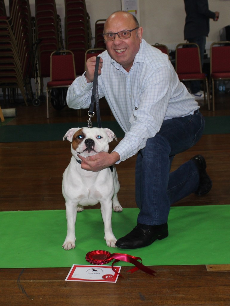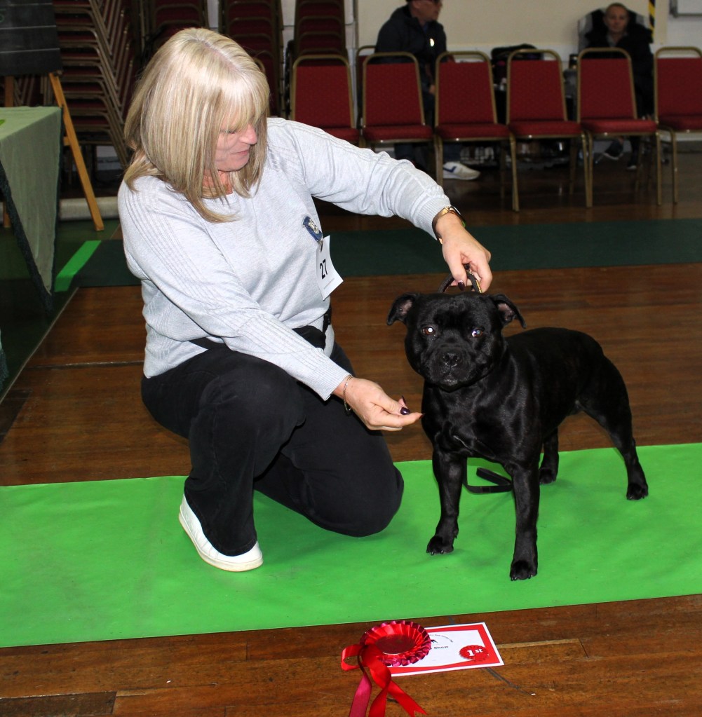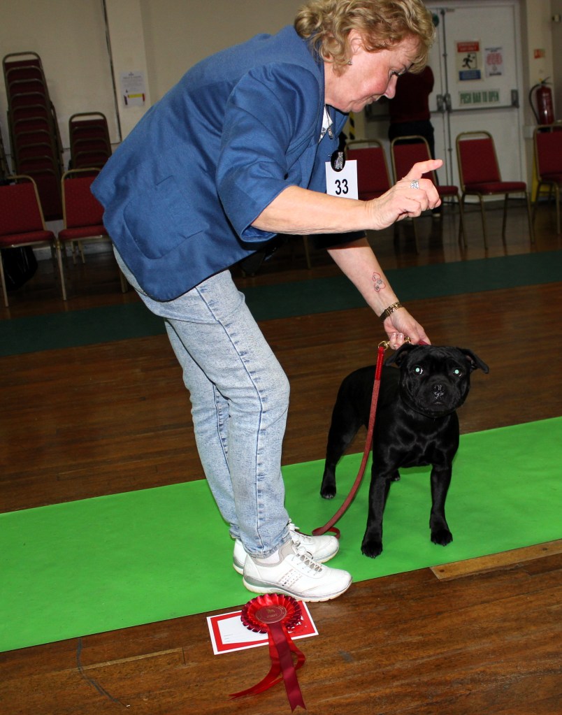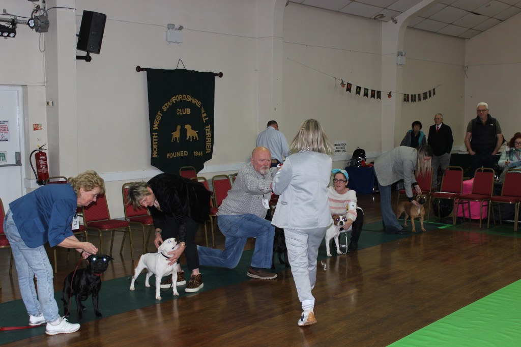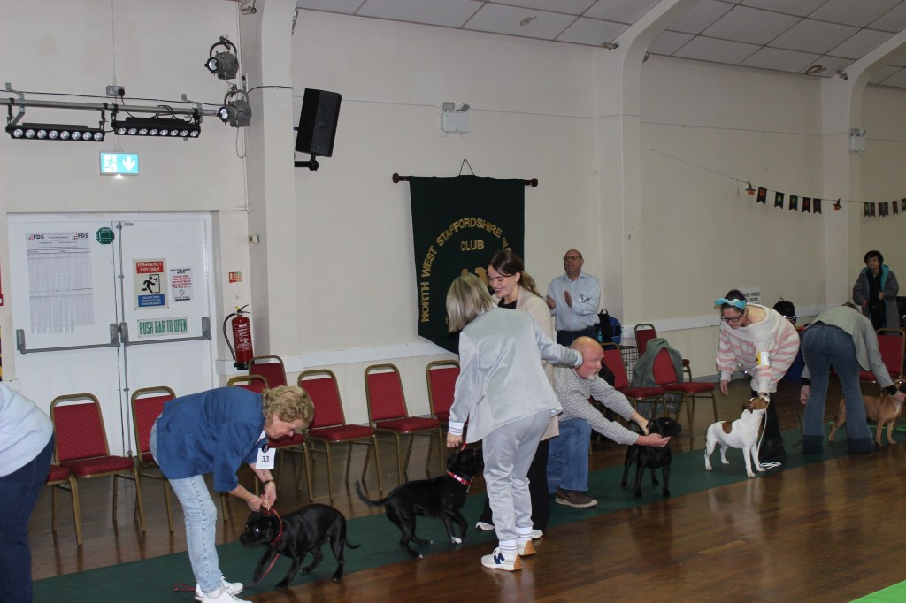 Thank you so much for inviting me to judge at the North West Staffordshire Bull Terrier Club Open Show today. I would like to express my sincere thanks to the committee for making me feel so welcome and for all their hard work in organising such a lovely event — it was a real pleasure to be part of it.