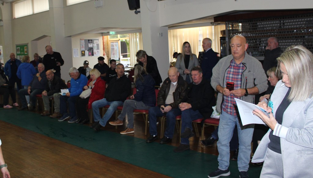 Both these two photos include Jimmy & Maureen Devine who I must say are regulars at our shows, despite no bar. Anyway Jim didn’t need a bar because he won the top raffle prize which included various bottles of wine and 4 packs of beer and lager, not to mention some chocs – should last these two stalwarts a day or two at least! The photo below is of this monumental event.