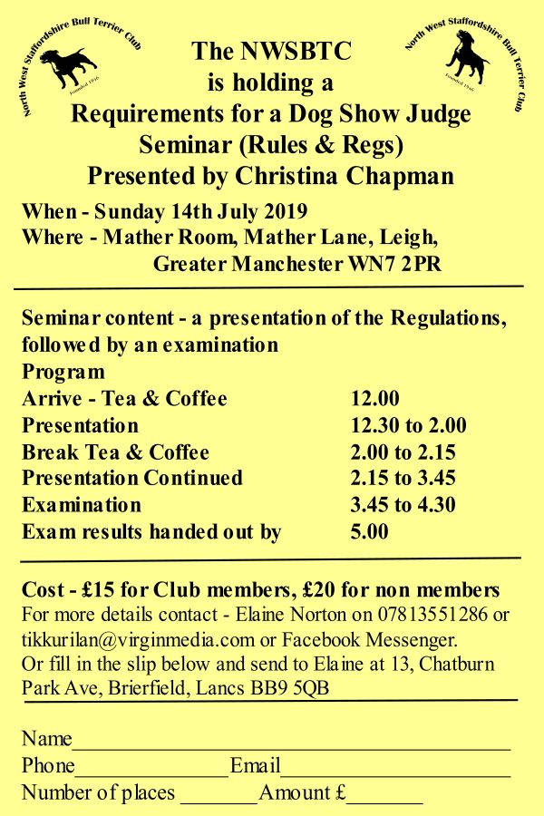Requirements for a Dog Show Judge Seminar 14th July 2019