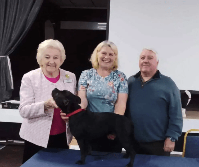 Christina Chapman, Anne Preston, who organised the event & Geoff Boote, Club President and front & centre the lovely Enya, who acted as table dog for the hands on assessment for Points of the Dog.