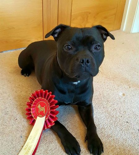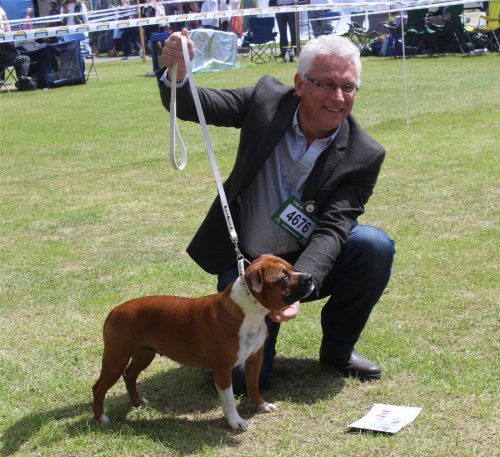In the Puppy bitch class another 2nd place – this time Andy & Linzi Mayren’s Joemikeste Queen Of The Nile at Fergiestaffs, with Marcus Blow’s Valglo Deja Vu in 3rd – pictured right.